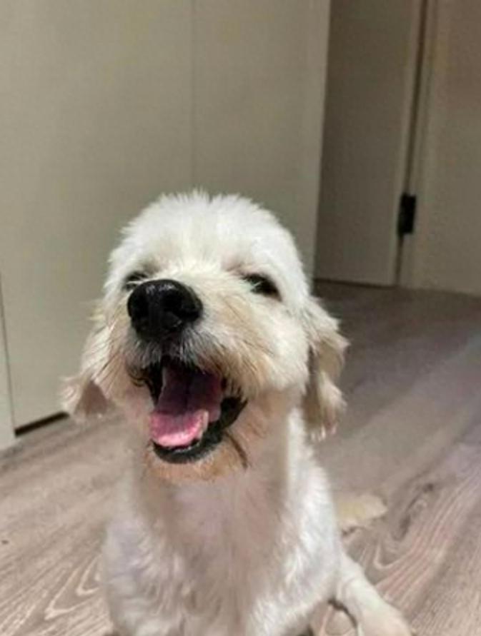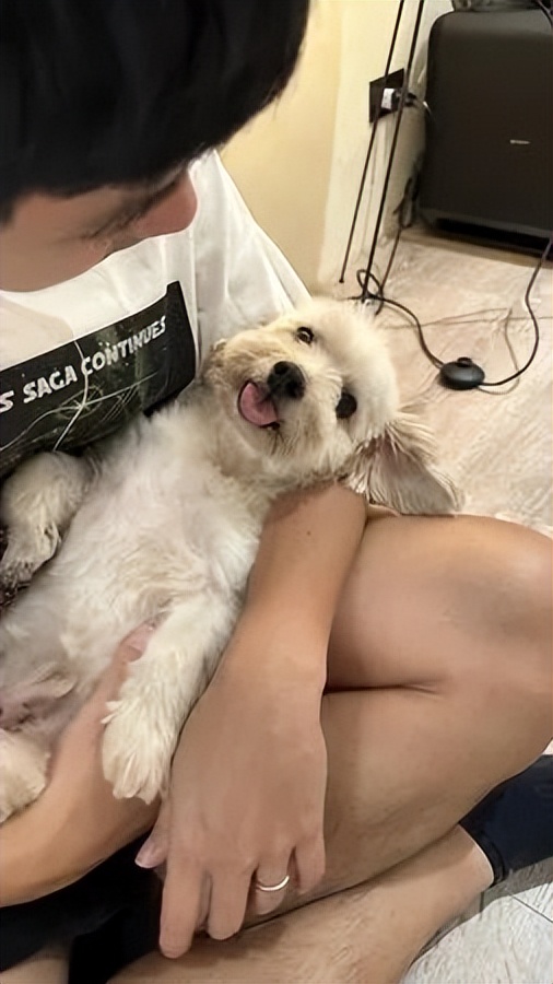 虽然才来到新家1个月,但在家人的宠爱下,毛孩的脸上也是写满了幸福!